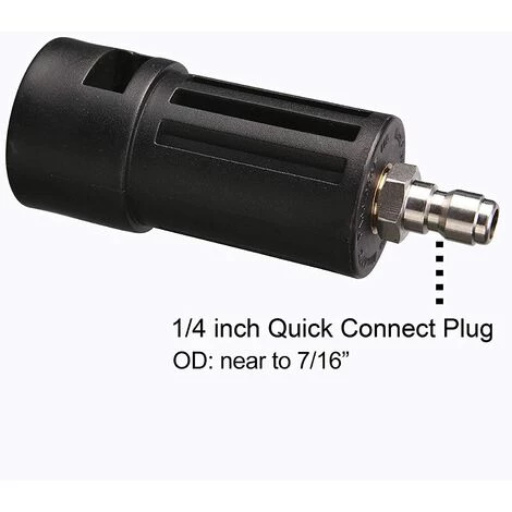 Application : avec cet adaptateur Karcher, un pistolet nettoyeur haute pression universel ou une baguette (raccord rapide 1/4″) peut utiliser une pièce de nettoyeur haute pression Karcher (raccord en forme de T), tels que le nettoyeur de surface Karcher T300 et la buse de mousse Karcher 26431470 FJ6.