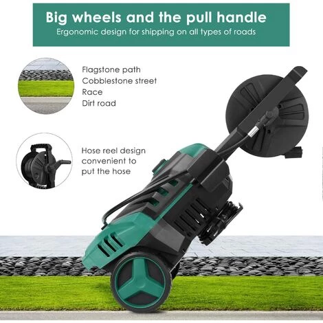 ★Design haut de gamme: équipé d’un enrouleur de tuyau, soigné et beau, économise de l’espace. Les poignées et les pistolets de pulvérisation de haute qualité garantissent une durée de vie plus longue. Avec 2 buses réglables, vous pouvez choisir comment vous souhaitez nettoyer.