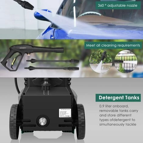 ★Contenu de la boîte: nettoyeur haute pression , 2 buses, tuyau haute pression, nettoyeur, pistolet pulvérisateur et accessoires.