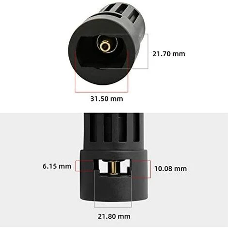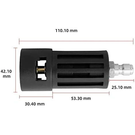 Application : avec cet adaptateur Karcher, le pistolet ou la lance de nettoyeur haute pression universel (raccord rapide 1/4″) peut utiliser une pièce de nettoyeur haute pression Karcher (connecteur en forme de T Karcher), comme le nettoyeur de surface Karcher T300, Karcher 26431470 FJ6 buse en mousse.