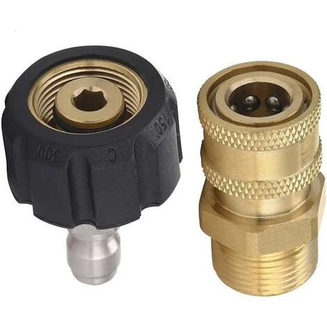 Convertit les raccords filetés M22 en un ensemble de connecteurs rapides de 6,35 mm ; peut être connecté à une variété de pistolets à eau haute pression, tuyaux, pompes, dévidoirs, vannes à boisseau sphérique, baguettes télescopiques, nettoyeur de surface, pistolet de pulvérisation, etc.