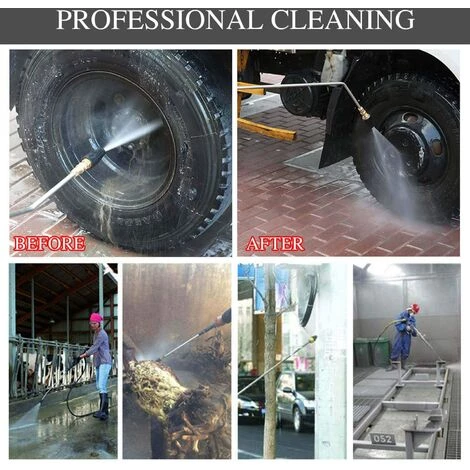 【Réduction De Moitié Du Temps De Nettoyage】La buse de turbine tourne à grande vitesse pour former un jet d ‘eau oscillant puissant destiné à une machine de nettoyage haute pression. Cependant, l’augmentation de l’intensité et de la surface de nettoyage permet donc de réduire de moitié le temps de nettoyage