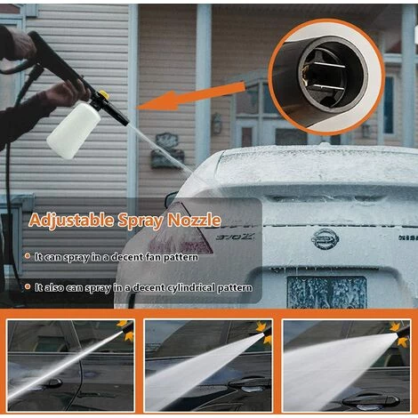 Buse de pulvérisation réglable pour une génération de mixage et de mousse. Le pulvérisateur à mousse est réglable et vous pouvez régler la quantité et le ventilateur de mousse comme vous le souhaitez.