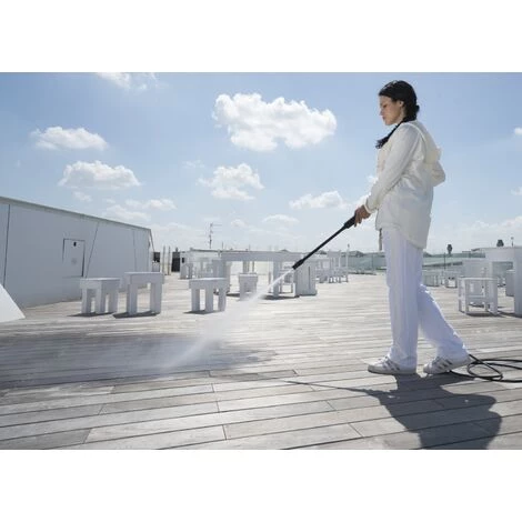 Le nettoyeur haute pression BXPW1300E est idéal pour l’enlèvement occasionnel de la saleté modérée sur les surfaces domestiques extérieures, les grilles, les outils, les meubles de jardin, les voitures, les motos et les vélos. Son utilisation est simple comme bonjour ! Il suffit de le raccorder au réseau d’eau et à la prise de courant, puis de mettre l’interrupteur sur ON. BXPW1300E comporte 6 accessoires : un pistolet, une lance et un flexible haute pression de 5 mètres, une rotabuse qui diminue le temps de nettoyage et optimise l’efficacité du lavage en éliminant la saleté la plus tenace, une buse à jet réglable qui permet de varier l’intensité du jet selon les besoins, un kit canon à mousse de 0,4 litre à monter sur la lance. BXPW1300E est le nettoyeur le plus compact de la ligne BX BLACK+DECKER. Il est léger et occupe très peu de place. En effet, après emploi, ses accessoires et son câble se rangent directement sur le nettoyeur, sur les crochets prévus à cet effet. La poignée intégrée sur le haut et les deux roulettes avec bande de roulement de 12 cm de diamètre optimisent sa maniabilité et simplifient son transport. La durée de la garantie est de 2 ans à compter de la date d’achat.PLUS•Pression (bar) max. 100 ; Puissance absorbée (kW) 1,3 ; Débit (l/h) max. 390 ; Température eau d’alimentation (°C) max. 50•Nettoyeur haute pression idéal pour l’enlèvement occasionnel de la saleté modérée sur les surfaces extérieures, les grilles, les outils, les meubles de jardin, les voitures, les motos et les vélos•6 accessoires à accrocher après emploi sur l’arrière du nettoyeur•Raccord rapide entrée eau avec filtre contrôlable qui retient les impuretés et garantit le parfait fonctionnement du nettoyeur•Poignée intégrée sur le haut de l’appareil pour faciliter le transport