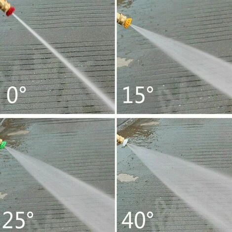 【Cinq Angles】 Choisissez différents angles de buse en fonction de vos besoins. 1 buse en acier inoxydable rouge (0 degré), 1 buse en acier inoxydable jaune (15 degrés), 1 buse en acier inoxydable verte (25 degrés), 1 buse en acier inoxydable blanche (40 degrés), 1 buse à savon en laiton (65 degrés).