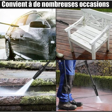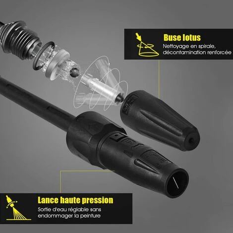 【Buse à pression réglable】: Par rapport aux autres produits où il est nécessaire de changer la buse pour contrôler le volume d’eau, cette buse haute pression réglable ne nécessite qu’une rotation facile.