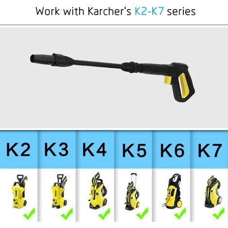Ce kit d’accessoires pistolet et lance de pulvérisation est idéal pour les nettoyeurs haute pression Kärcher k2 k3 k4 k5 k6 k7.