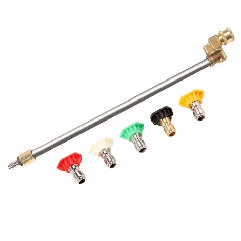 Conçu avec un coupleur pivotant : notre baguette de rechange pour nettoyeur haute pression est conçue avec un coupleur pivotant à connexion rapide. La partie supérieure est une prise de connexion rapide de 1/4 pouce qui s’adapte à la plupart des embouts de buse, facile à installer et à utiliser. Compatibilité universelle : 1/4 pouce femelle rapide La prise de connexion se connecte aux pièces du nettoyeur haute pression, s’adapte aux nettoyeurs haute pression de la plupart des marques avec un connecteur 1/4″ (au pistolet à gâchette). Pistolet nettoyeur haute pression facile à connecter et à déconnecter et autres. 180 degrés avec 5 angles de rotation : 5 angles de rotation reliant le coupleur pivotant : 90 degrés à gauche, 45 degrés à gauche, 90 degrés, 45 degrés à droite, 90 degrés à droite. Ajustez les angles pour atteindre les zones de contact difficiles, comme le bas de votre voiture, les jantes de la voiture, les zones mortes de votre toit, les coins, la gouttière, etc. Large application : lance de nettoyeur haute pression de 40,6 cm avec connexion rapide. Le coupleur pivotant est la meilleure combinaison pour votre nettoyeur haute pression. Livré également avec 5 embouts de buse pour nettoyeur haute pression. Répondez à vos besoins dans différentes situations, telles que l’arrosage des fleurs et des plantes, le lavage des voitures, etc. Il facilite le lavage de votre voiture, de votre trottoir, de votre jardin et plus encore. La lance de remplacement/rallonge de nettoyeur haute pression offre une longueur supplémentaire pour le rendre plus utile. Solide, durable pour assurer une longue durée de vie. Livré avec 5 embouts de pulvérisation différents : Red One 0, Yellow One 15, Green One 25, White One 40, Black One 65. Max. Pression de fonctionnement : 5000 PSI Max. Température : 60/140 Couleur. : multicoloreTaille : environ 40 cmMatériau de la baguette : Laiton et acier inoxydableMatériau des buses : Laiton et acier inoxydable et plastiqueContenu de l’emballage : 1 * tiges d’extension (avec connecteurs) 5 * buses Seul le contenu de l’emballage ci-dessus, les autres produits ne sont pas inclus. Remarque : prise de vue légère. et différents affichages peuvent rendre la couleur de l’élément de l’image légèrement différente de la réalité. L’erreur de mesure autorisée est de +/- 1-3 cm.