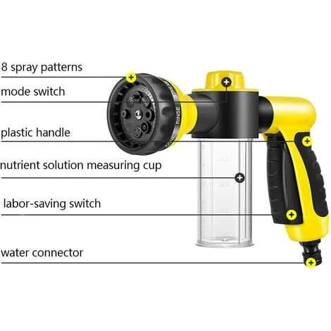Pistolet pulvĂ©risateur pour tuyau d’arrosage – Fixation pour tuyau d’arrosage haute pression avec rĂ©servoir de savon/engrais | Arroseur de lavage Ă jet Ă 8 modes | PulvĂ©risateur Ă tuyau avec distributeur pour animaux de compagnie, lave-auto, jardinage </ P>