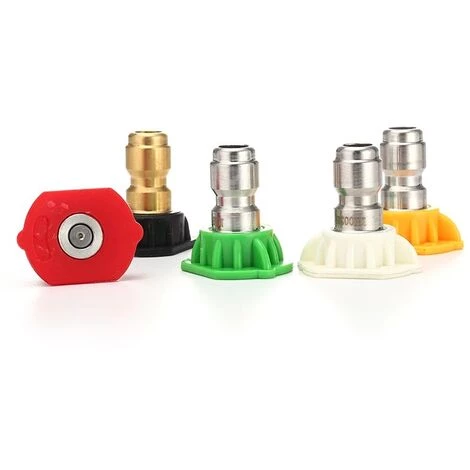 【Cinq Angles】 Choisissez différents angles de buse en fonction de vos besoins. 1 buse en acier inoxydable rouge (0 degré), 1 buse en acier inoxydable jaune (15 degrés), 1 buse en acier inoxydable verte (25 degrés), 1 buse en acier inoxydable blanche (40 degrés), 1 buse à savon en laiton (65 degrés).