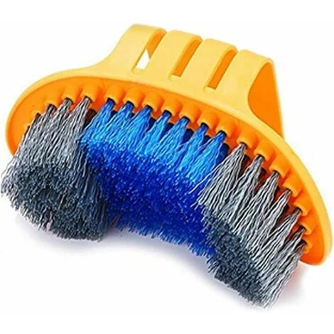 Une brosse à récurer super rigide avec des poils évasés pour vraiment pénétrer dans les bords du pneu et des coups de pouce pour nettoyer, assurez-vous que toute la boue et la saleté sont éliminées pendant le nettoyage.