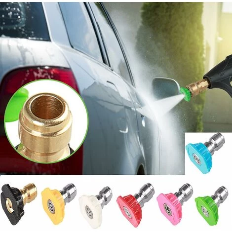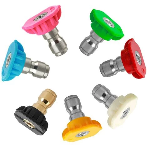 groupe de buses de laveuse pression: rouge -0, jaune -15, vert -25, blanc -40, mousse noire Indice de nettoyeur haute pression: Conception de connexion rapide 1/4 » 2,5 GPM, prise en charge de 4000 PSI