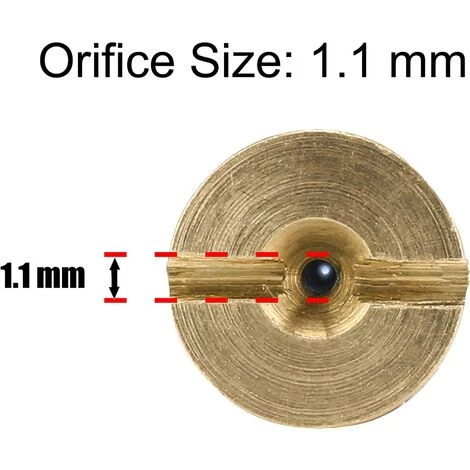 Embout de buse à orifice : buse filetée NPT mâle, environ 0,28″, taille d’orifice 1,1 mm. Fabriqué en laiton pour plus de durabilité dans les pistolets à mousse. Pression maximale : 3 000 psi.