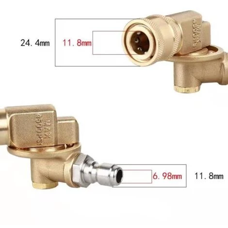 Coupleur pivotant universel pour buse de nettoyeur haute pression compatible avec la plupart des grandes marques. Idéal pour nettoyer les gouttières, le dessous des véhicules à moteur, l’arrosage des plantes, le nettoyage des zones difficiles d’accès, etc.