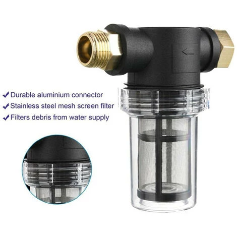 Matériaux de haute qualité : ce filtre d’entrée de tuyau d’arrosage est doté d’un dessus en plastique transparent, de raccords en laiton massif et d’un tamis en acier inoxydable, la meilleure protection pour votre équipement de nettoyeur haute pression.