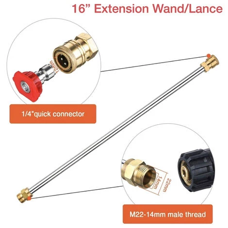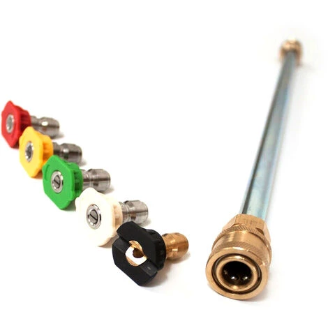 | Fourni avec une lance de métal de 16 pouces et cinq types de buses, le kit est utilisé pour moteur à essence et les nettoyeurs haute pression à propulsion électrique nettoyage. Traits: Caractéristiques: |