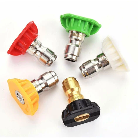 5 embouts de buses différents, 0°, 15°, 25°, 40°, Savon. Connexion rapide, utilisée pour le nettoyeur haute pression.