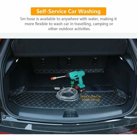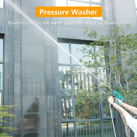 Conception sans fil, avec batterie de grande capacité 21V 15000mAh pour environ 30 à 45 minutes de travail, ce qui est absolument suffisant pour le lavage de voiture. Et facile à charger avec l’adaptateur.