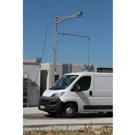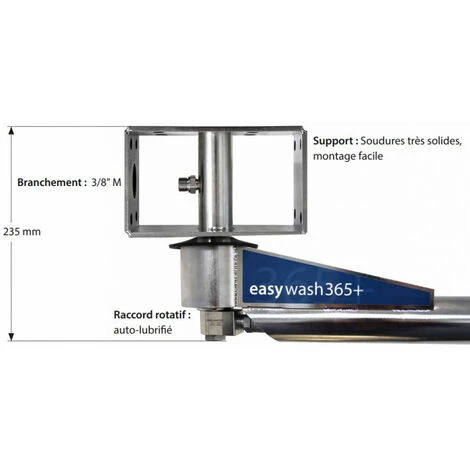 Le bras de lavage rotatif permet d’aménager une aire de lavage en permet une total liberté de mouvement à l’opérateur. Ce bras permet de tourner autour du véhicule ou de la pièce à laver sans risquer d’abîmer le flexible. De plus celui-ci n’ayant pas de contact au sol, il a une durée de vie plus longue.
