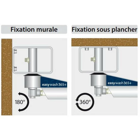 Le bras de lavage peut se monter en fixation murale ou en fixation sous-plancher: