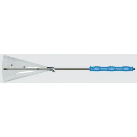 Cône de protection contre les éclaboussures en PVC, avec support en acier inoxydable pour fixation réglable sur le tube de lance avec vis papillon.
