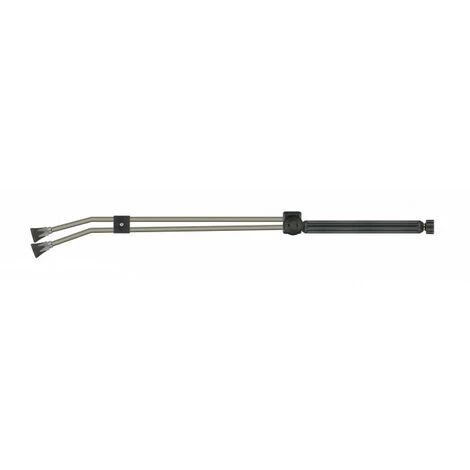 | La double lance permet de bénéficier à la fois d’une sortie haute pression avec une buse HP et d’une sortie en basse pression. Le choix se fait grâce à un robinet latéral à la lance. Livrée sans buse |