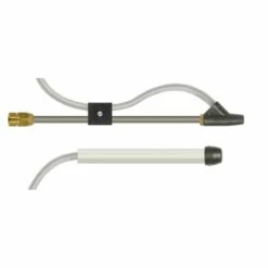 | Une lance de sablage haute pression se branche sur la poignée de votre nettoyeur haute pression. La buse de sablage permet l’ajout de sable à l’eau sous pression. Cette opération est très utilisée pour décaper des surfaces peintes (volet, portail, crépi, etc…) ou par les professionnels pour du ravalement ou le nettoyage de graffitis. Le tube d’aspiration doit arriver par le haut de la buse pour éviter un retour d’eau dans le sable. Le tube d’aspiration fait 300 mm et le tuyau est de 3 mètres. La ganulométrie du sable doit être comprise entre 0,2 à 0,8 mm |
