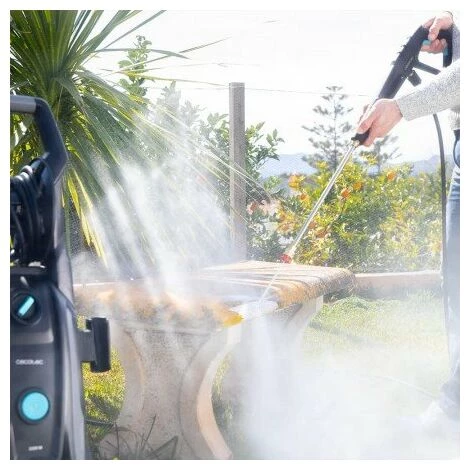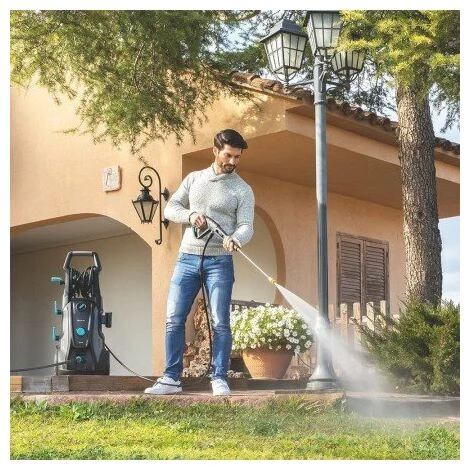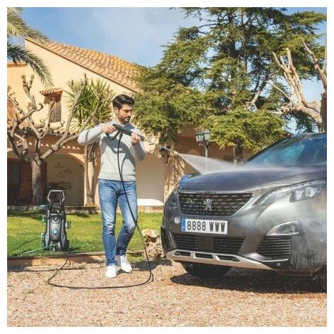 Potenza massima di 3200W, con motore brushless che offre un risultato professionale. Include accesorios per pavimenti e auto. Pressione massima di 225 bar e portata massima di 540 l/h. Ha una pompa in alluminio con teste in rame e zinco. Il raggio d’azione è +14 m.