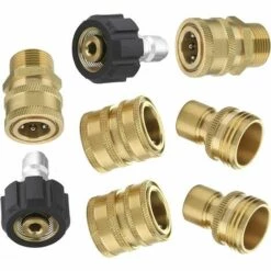 DIMENSION: 8 pcs d’adaptateur universel pour nettoyeur haute pression, 4 types de coupleurs incluent: Métrique M22-14 pivotant femelle + fiche 3/8 », déconnexion rapide 3/8 » + M22 mâle, 3/4 » femelle + connexion rapide 1/2 », fiche 1/2 » + 3/4 »mâle.