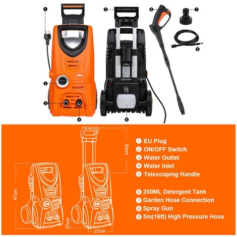 Produit jusqu’à 2000PSI à 380L/h pour une puissance de nettoyage supérieure et élimine la saleté en quelques secondes.
