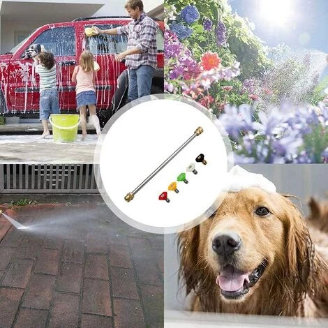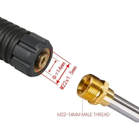 Haute pression : extension de pistolet de lavage haute pression 4000 PSI, raccords en laiton. REMARQUE : L’extrémité de la baguette est M22 14. Assurez-vous que l’embout de votre nettoyeur haute pression est de cette taille. L’autre extrémité est un connecteur rapide de 6,35 mm pour connecter la buse