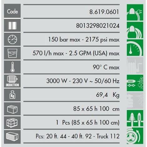 Caractéristiques Techniques de ce nettoyeur Haute pression MISSOURI 1310 Lavor :