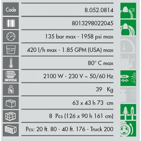Caractéristiques Techniques de ce nettoyeur Haute pression XTR 1007 Lavor :