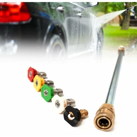 Les 5 buses sont conçues pour le lavage à haute pression jusqu’à 4000PSI et 2,9GPM, peuvent être attachées à une baguette à connexion rapide pour une application plus rapide et plus.