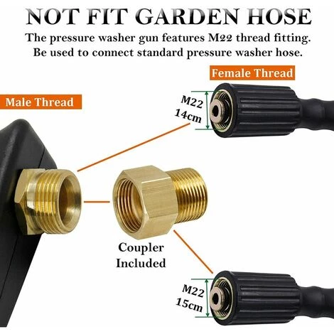 - Humanisation?Conception?: Assemblez des pistolets de nettoyeur haute pression longs ou courts selon vos besoins. Trois longueurs : 40 po, 25 po et 8,8 po. Notre pistolet à gachette de remplacement pour nettoyeur haute pression s’adapte à la plupart des nettoyeurs haute pression à essence et électriques avec raccord M22. Le pistolet a une gachette de verrouillage de sécurité pour éviter les jets accidentels. Poignée con?ue plus confortable et meilleure prise en main.