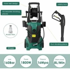 AICOK Nettoyeur Haute Pression 1800W – 160 Bar, 480L/h, 50° Max. – 7 Accessoires Inclus