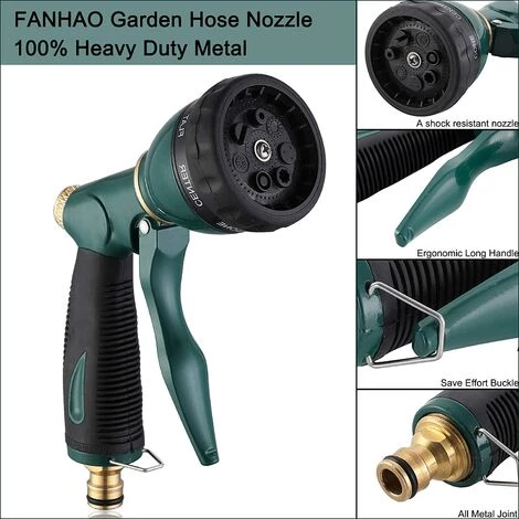 7 réglages de pulvérisation pour chaque usage – Choisissez parmi plat, moyen, cône, angle, pulvérisation, brouillard et jet pour répondre à tous vos besoins d’arrosage. Parfait pour arroser votre jardin, pelouse, herbe et parterres de fleurs. Il est également idéal pour laver la voiture, les chiens. et animaux de compagnie.