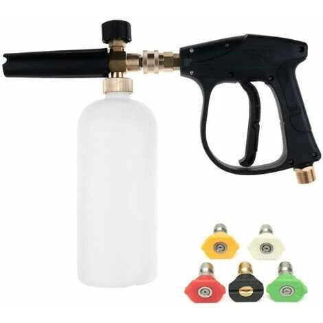 Comprend: lance à mousse, corps de pistolet à eau, 5 buses de différence