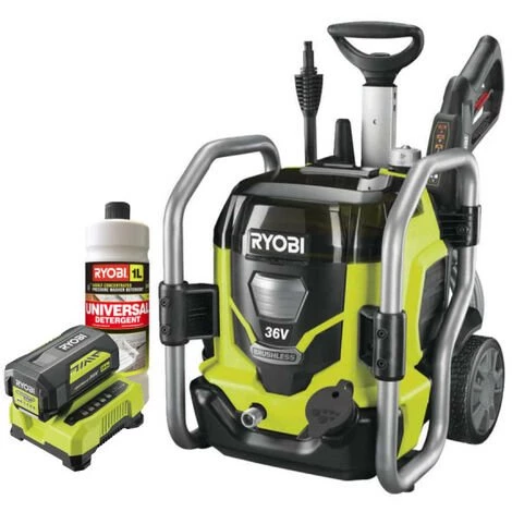 Pack RYOBI Nettoyeur haute pression Brushless 36V – 1 batterie 4.0Ah – 1 chargeur RPW36X120HI40 – Canon à mousse 400 ml RAC726