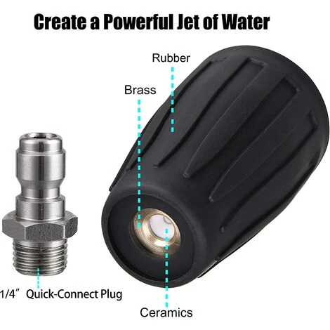 Les buses de nettoyeur haute pression rotatif ont une déconnexion de 1/4″ pour un nettoyage plus efficace. Convient à la plupart des marques de baguettes ou de pistolets de nettoyeur haute pression.