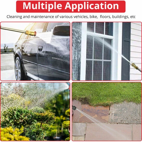 - Le nettoyeur haute pression dispose de 6 modèles de buses différents : 0°, 15°, 25°, 40°, diagonale et spray. Convient pour laver les voitures, laver les sols, laver les meubles, arroser les fleurs, etc. 6 modes peuvent être changés simplement en tournant la buse, ce qui peut économiser beaucoup d’eau et répondre à tous vos différents besoins.