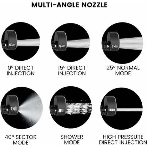 [Champ d’application] cette buse de nettoyeur à pression est une buse à connexion rapide de 1/4 « pour de nombreux types de tuyaux. [Modes 6 en 1] cette buse de nettoyeur à pression a 6 modes à choisir parmi 0 degrés, 15 degrés, 25 degrés, 40 degrés, mode douche, injection directe à haute pression. [Buses multi-angles] cette buse de nettoyeur à pression est une buse multi-angle haute pression 6 en 1; Les buses multi-angles peuvent mieux nettoyer les surfaces et la saleté profonde. [Pression maximale] cette pression maximale de cette buse de nettoyeur à pression est de 200 bar / 3000 PSI, en matière plastique, robuste et durable. [Gain de temps] l’utilisation de cette buse de nettoyeur à pression peut répondre à vos différentes exigences de nettoyage, et vous n’avez pas besoin de changer la buse de nettoyeur à pression à chaque fois pour s’adapter à différents nettoyages. Ça fait gagner plus de temps.Nom du produit: buse de nettoyeur à pression