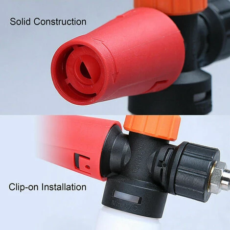Caractéristiques: Fabriqué à partir de plastiques techniques et de laiton de première qualité, solide et durable. Avec raccord rapide 1/4 », capacité 500. Pression maximale: 16MPa (2320 PSI), température maximale: 60 ℃. Buse de pulvérisation variable et réglable pour un mélange précis et une génération de mousse. Conception robuste, parfaite pour un usage amateur ou professionnel. Caractéristiques: Matériel: plastiques techniques + laiton Type: Type A / Type B (facultatif) Capacité: 500 ml Max. Pression: 16MPa (2320 PSI) Max. Température: 60 ℃ Taille de l’article: 7,5 * 19,0 cm / 3,0 * 7,5 pouces Poids de l’article: 390g / 13,8 oz Taille de l’emballage: 15 * 15 * 10 cm / 5,9 * 5,9 * 3,9 pouces Poids du colis: 400g / 14,1 oz Liste des paquets: 1 * pulvérisateur de mousse pour nettoyeur haute pression