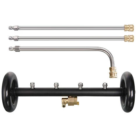 Double usage : accessoire de nettoyeur haute pression 2 en 1, avec 4 buses, 2 roues flexibles, peut facilement se transformer en un nettoyeur de train d’atterrissage ou un balai à eau via un coupleur pivotant réglable, pour un lavage quotidien en toute simplicité.