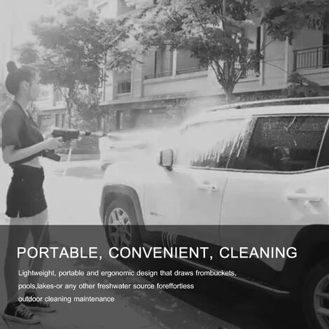 2X PLUS DE PRESSION – La laveuse portative sans fil 24 V délivre jusqu’à 30 bars (435 psi) de pression, un débit d’eau évalué à 4 L / min, c’est 2 fois plus de pression qu’un tuyau d’arrosage avec une buse, et beaucoup plus portable et pratique pour prendre le nettoyant puissant n’importe où.