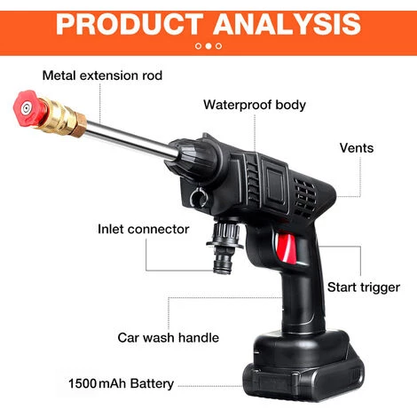 Notre nettoyeur haute pression sans fil est léger, sans fil, facile à assembler, à démonter et à transporter, vous pouvez l’utiliser à tout moment et n’importe où.