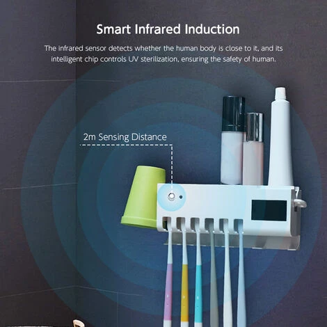 Le support de lumière UV pour nettoyer les brosses à dents offre une protection buccale pour vous. Il dispose d’une charge solaire ou USB, d’une induction infrarouge intelligente et d’une tige de dentifrice, pour une utilisation plus sûre et plus pratique. En outre, c’est un support de rangement multifonctionnel pour contenir des brosses à dents, du dentifrice, du fil dentaire, un grattoir à langue, un rasoir, une tasse, etc. Organisez votre salle de bain.