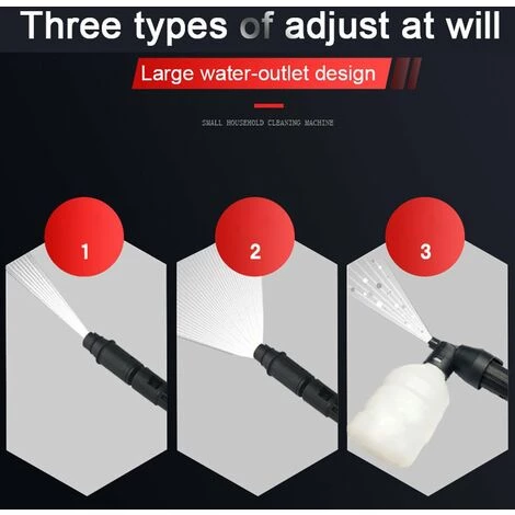 Cette machine de lavage de voiture peut être connectée directement au robinet d’eau ou placée dans un seau d’eau pour l’auto-absorption de l’eau, ce qui permet de l’adapter à une variété d’environnements. Livré avec deux types de buses avec deux formes de becs d’eau différentes, une injection directe à haute pression, une pulvérisation en forme d’éventail, et les buses peuvent être changées librement en fonction de vos demandes. Livré avec une bouteille en mousse, un détachant en mousse, combiné avec une solution de lavage de voiture pour éliminer la saleté plus rapidement. Conception à pression réglable, avec manomètre de visualisation, avec plages réglables de 0 à 15 MPa.
