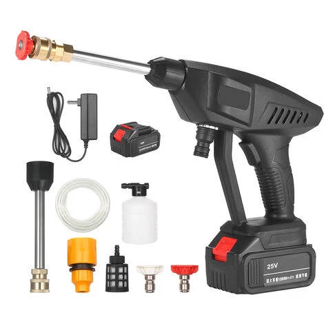 Puissant nettoyeur haute pression portable Ă moteur en cuivre alimentĂ© par batterie au lithium 25 V ; Corps de pistolet de pulvĂ©risation d’eau sans fil lĂ©ger et compact avec filtration Un tuyau d’arrosage de 5 m de long permet de puiser n’importe quelle source d’eau douce pour un nettoyage et un entretien extĂ©rieurs sans effort, une double filtration en profondeur des impuretĂ©s dans l’eau, une pompe de protection, des machines prolongĂ©es & # 39; temps de service. Avec une pression parfaite, il est idĂ©al pour les travaux de nettoyage plus lourds mais routiniers. tels que le lavage de voiture, le nettoyage de pont, le dĂ©graissant ou l’arrosage de jardin, etc. qui est 3 fois plus de pression que le tuyau d’arrosage avec buse, permet d’effectuer des travaux de nettoyage plus lourds, tels que le lavage de voiture, le nettoyage de pont, le dĂ©graissant ou l’arrosage de jardin, etc. 45 minutes de fonctionnement continu, plug and play, ne soyez plus limitĂ© par le cordon. La batterie Ă très longue endurance vous apporte non seulement une mĂ©thode de travail pratique, mais prolonge Ă©galement le temps de service du pistolet de pulvĂ©risation. oĂą, source d’eau comme une piscine, un lac ou un seau. Vous pouvez brancher un tuyau d’arrosage Ă la maison ou mĂŞme une bouteille de 2L en dĂ©placement. La boĂ®te de filtration pour tuyau Ă haute efficacitĂ© et filtration profonde, qui peut protĂ©ger la pompe et prolonger sa durĂ©e de service.