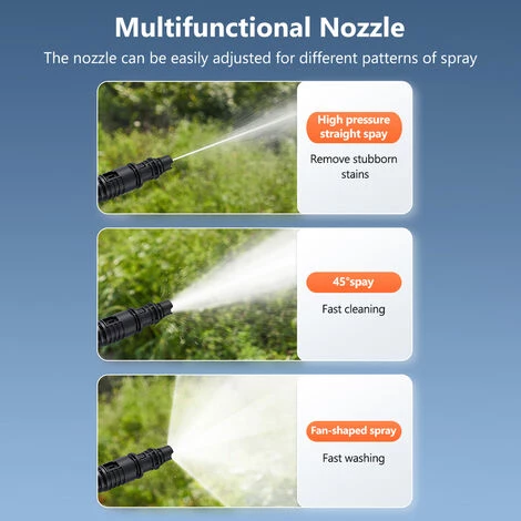 Accessoires utiles – est livré avec un filet filtrant qui a une efficacité de filtration élevée, protégeant la pompe et prolongeant sa durée de vie. Et une bouteille moussante pour générer rapidement des mousses, ce qui facilite le nettoyage. Buse multifonctionnelle – la buse peut être facilement ajustée pour différents modèles de pulvérisation, répondant aux besoins de diverses applications, telles que le lavage de voiture, l’arrosage du jardin, etc. .